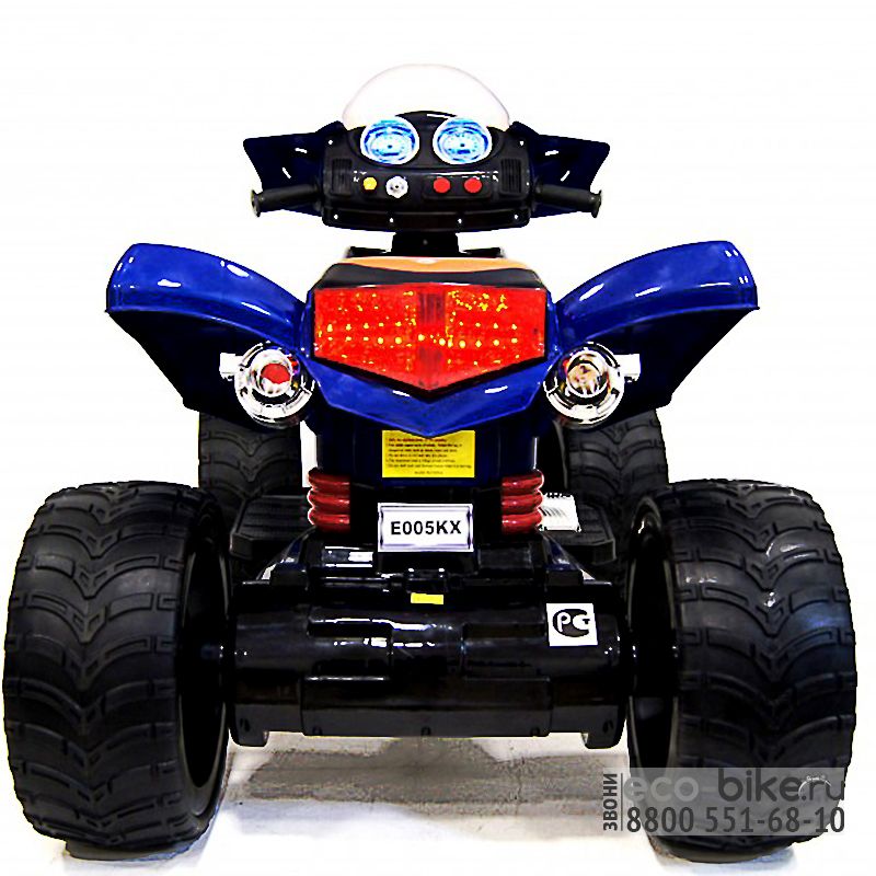 Детский квадроцикл Rivertoys E005KX — незабываемый подарок для Вашего ребенка. Ни один не сможет устоять перед ним. Все взгляды будут направленны на Вас, гарантируем. Дизайн — мощный, стильный и качественный. Имеет 4 широких, резиновых колеса. 2 мощных аккумулятора по 6V7Ah каждый. Рассчитан для преодолевания тяжелых дорог (грунт, песок и камни).