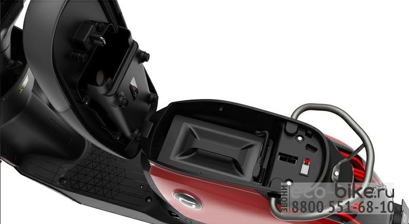 Отсек для сиденья может быть открыт с помощью беспроводного ключа дистанционного управления. Отсек обеспечивает доступ к аккумулятору и предлагает отсек для хранения.